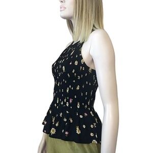 PATRONS OF PEACE Rayon Shirred Smocked Black Floral Halter Top Flounce Bottom