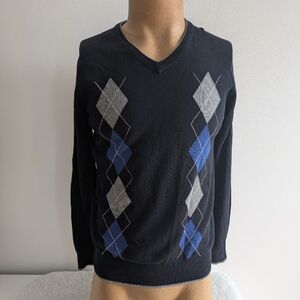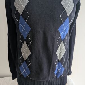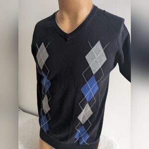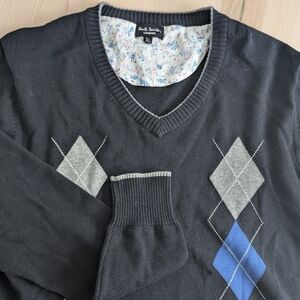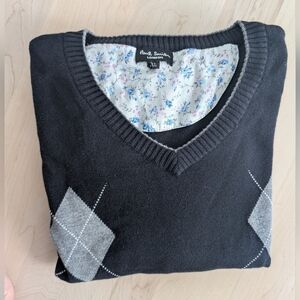 Stylish Paul Smith sweater. Black with gray argyle pattern. V-neck design. Beautiful! Excellent condition!
