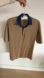 Paul Stuart 100% cotton short sleeve blue and yellow striped polo shirt. Three buttons. Blue collar with yellow trim. Made in Italy.