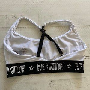 The Foundation Sports Bra by Activewear label P.E Nation is designed for medium - low impact sports. The classic sports crop features a scoop neckline, P.E Nation logo across the centre front and waist band, adjustable and convertible contrast criss-cross straps, elasticated under-bust band and double lined throughout the body.