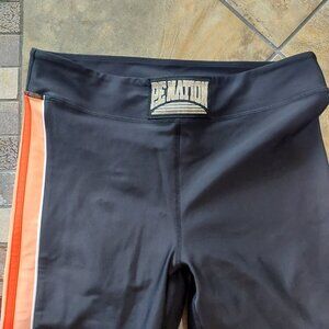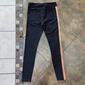 Sleek black leggings with bold orange stripe. Perfect for active wear.