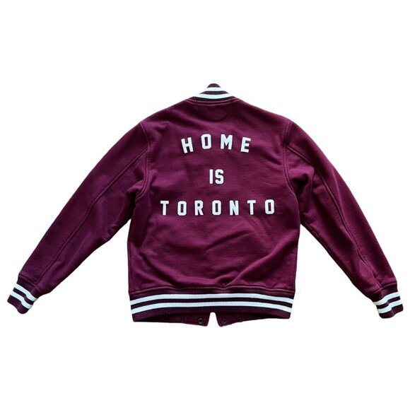 PEACE COLLECTIVE - HOME IS TORONTO Button-Up Varsity Jacket - XS - Red/Burgundy