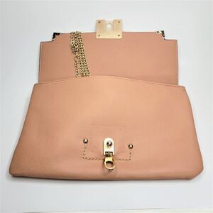 Peach Colored Satchel Crossbody Handbag with Gold tone Chain Strap
