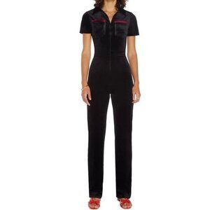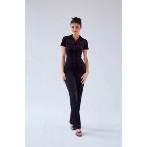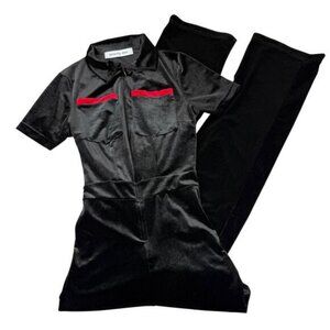 PEACHY DEN Black Velvet Kernel Velvet Jumpsuit Black Size XS Red Detailing