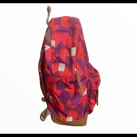 PEACOCKS Geo Print Zipper Backpack With Faux Leather Accents Red/Tan One Size