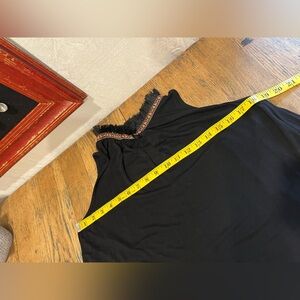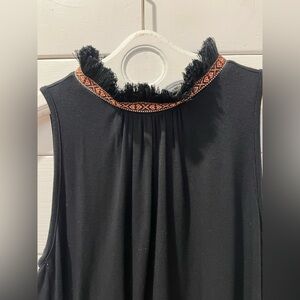 PEBBLE AND STONE Sleeveless Black Tunic with Fringed Embroidered Collar – Size M