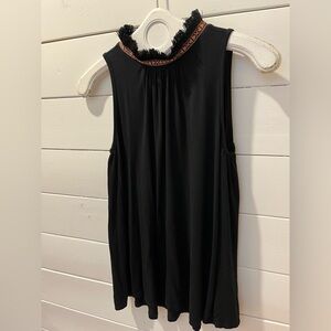 PEBBLE AND STONE Sleeveless Black Tunic with Fringed collar – Size M