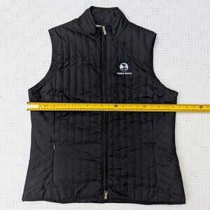 PEBBLE BEACH Classic Quilted Vest Women Sz L Golf Zip John Hancock Signature