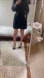 Peck & Peck black trench style coat with faux leather sleeves, side pockets, back slit, tie belt & silver zipper closure offset to the side. Its a lightweight coat that can be worn open with the belt tied at the back.