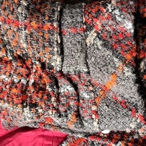 Boucle type plaid in rust, red greenish grey.