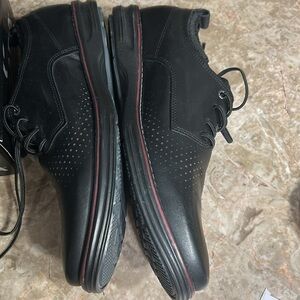 PEGADA black leather slip on oxford shoes. Elastic laces and material to slip on