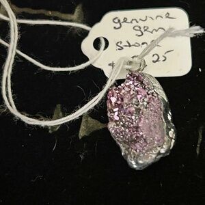 PENDANT, GENUINE PURPLE AGATE GEODE, 3-DIMENSIONAL, WITH SILVER-TONE BACK