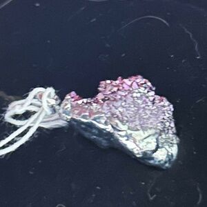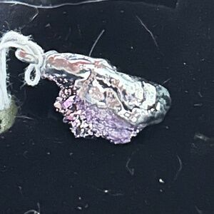PENDANT, GENUINE PURPLE AGATE GEODE, 3-DIMENSIONAL, WITH SILVER-TONE BACK AND EYE FOR CHAIN, TAG ON