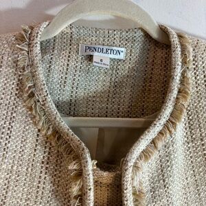 PENDLETON Sz 6 Jacket Sz 8 Skirt Suit Lined Tweed Hook Closure Shoulder Pads. Chanel vibes. Career office wear. Elegant and classic. Please note the jacket and skirt are different sizes.