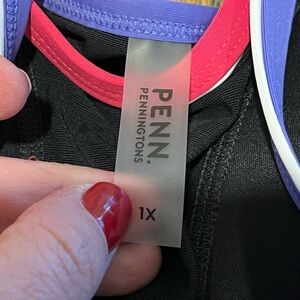 ❣️PENNINGTONS – Black Ribbed One-Piece Swim Dress – Plus Size 1X