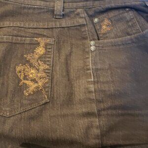 Pennington's Size 14 straight leg denim pants. Brown with gold emblem on one back pocket and one front pocket.