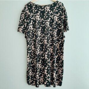 PENNINGTONS Button Down V-Neck Floral Print Tunic Top Black & Pink Sz 2X