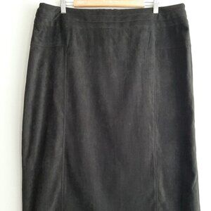 PENNINGTONS NWOT - Faux Suede Soft Maxi Long Length Skirt Back Slit Black Sz 18