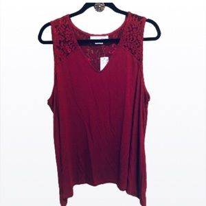 PENNINGTONS PLUS 2X In Every Story A-Line Tank Top Lace Yoke in Rumba Re…