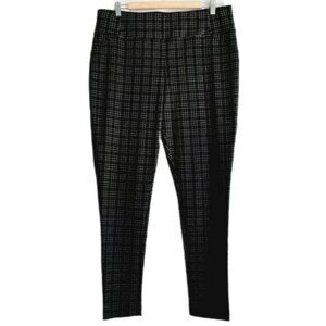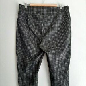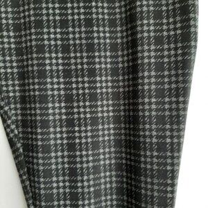 • Stretchy pull on legging style dress pants in grey and black check plaid pattern.