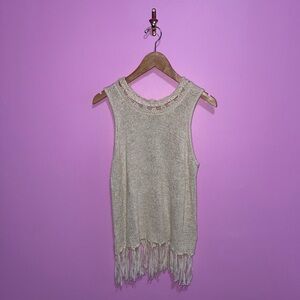 PEPIN Top Women's Size Large Beige Crochet Fringe Knit Tank Top Anthropologie