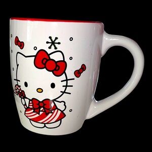 By Sanrio, this Hello Kitty collectible Christmas mug boasts a large 25oz capacity! Features a large handle and cheerful holiday design. Perfect for your Christmas movie nights! it is in excellent, clean condition with no damage of any kind.