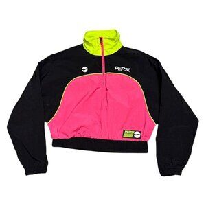 PEPSI x Forever 21 Collab Cropped Windbreaker Bright Retro Jacket Womens Small