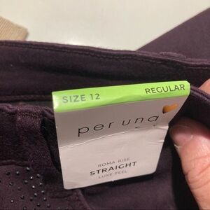 PER UNA By Marks & Spencer Sz 12 Roma Rise Straight Luxe Feel Rhinestone Embellished Jeans in Plum. Unique. Dress up or down. From streetwear paired with a chunky boot to evening wear paired with a pair of heels.