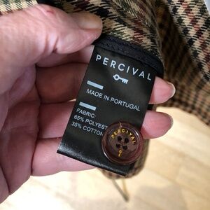 PERCIVAL Men's Short Trench Coat - Green, Black, Red Check - Size XL