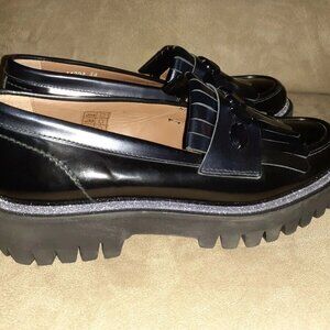 PERTINI-Black Leather Kilties Jeweled Loafers-Lightweight-Size 38/7.5-Excellent