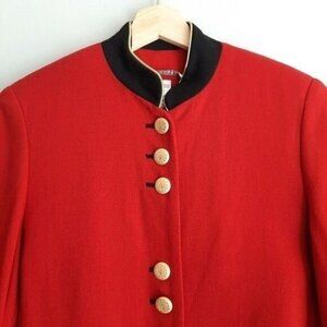 PETER NYGARD 100% Wool Red Blazer with Gold Embroidery Sz 6