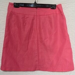 Polished and professional cotton and linen mini skirt. Dress up with a blouse and blazer or down with a tee shirt and sandals. Lined skirt has zipper and eye-hook in back with two pockets up front. Super cute, sorry no stretch.