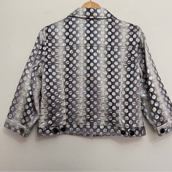 PETER Nygard crop jacket silver grey white jean jacket type black metallic siz 8