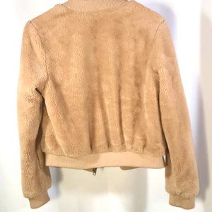PETITE Tan Camel Sherpa Teddy Bear Bomber Coat | Size S