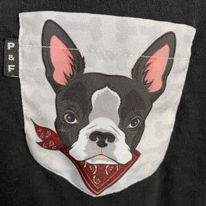 P&F Women's Black Short Sleeve Boston Terrier V-neck Pocket Tee Size X-small