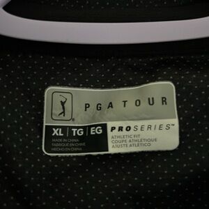 Experience the perfect blend of style and functionality with the PGA Tour Polo Shirt, crafted in a sleek black and gray color palette. This shirt is designed with performance fabric to keep you comfortable and cool, making it ideal for both casual wear and active days. Its classic polo design adds a touch of sophistication to any outfit. Pit to pit is 23 inches top to bottom is 30 inches