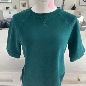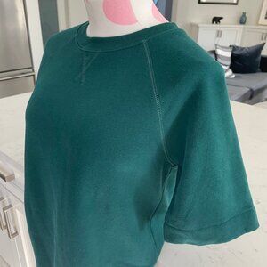 PGD Cozy Fleece Casual Crew Neck Short Sleeve Cotton Poly Blend Sweatshirt Mini Dress in Green