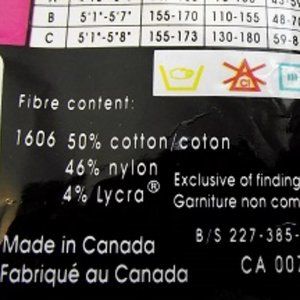 MADE OF: 50% cotton, 46% Nylon, 4% Lycra