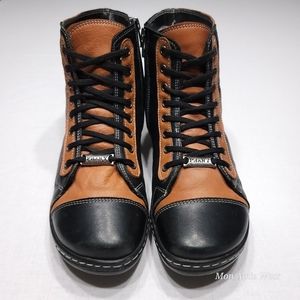 PHANY Genuine Leather Hightop Laceup Sneakers Tan & Black US6