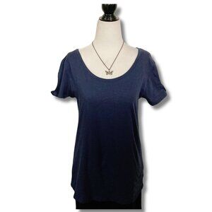 PHARAPHRASE Heathered dark blue peak-a-boo cutout sleeve t-shirt SMALL MEDIUM