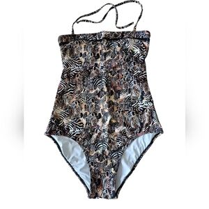 PHAX one piece Swimsute removable straps Tummy control zibra-tiger print M/34