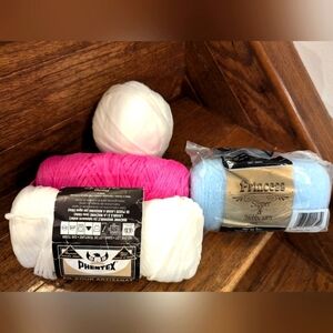 PHENTEX Slipper & Craft yarn Lot pink, blue & 2 white, Cream, Brown & Coral 640