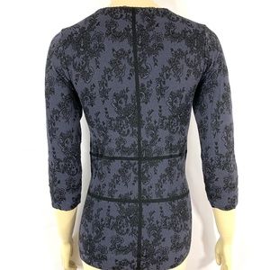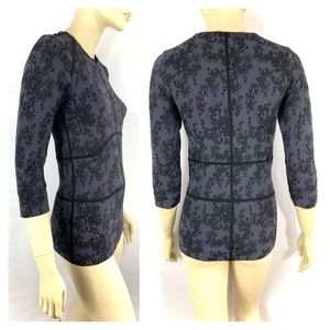 PHILIPPE MATIGNON lace prints black lavender fitted top L
