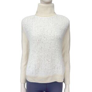PHILLIP LIM Textured Designer Knitted Wool White Cream Turtleneck Sweater sz S