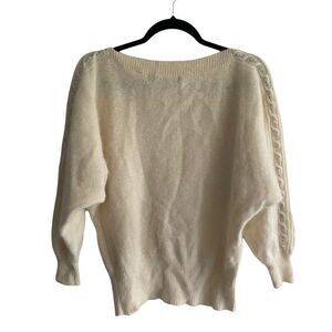 PHILLIPE RONSARD PARIS Vintage Lambswool Rabbit Hair Blend Boatneck Sweater With Dolman Sleeves And Crystal Bead Detail Down Arms