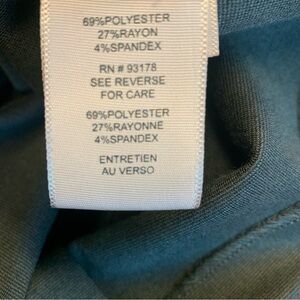 Stretchy knit material. Closure is a zipper and a hook eye in the back.