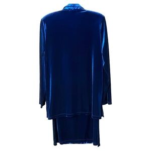 PICADILLY Blue Velvet Skirt Set Open Front Long Line Jacket Pencil Skirt Sz S/M