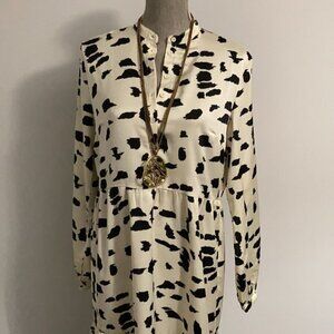 Pieces Abstract Maxi Cream Black Print Long Sleeve Smock