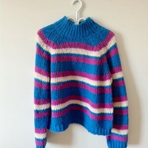 PIECES women color bloc knit long sleeves sweater crew neck size mediumgood used conditions