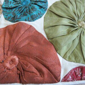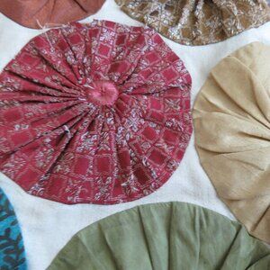 Gorgeous patchwork applique silk multicolor circle detail on the front with neutral background
